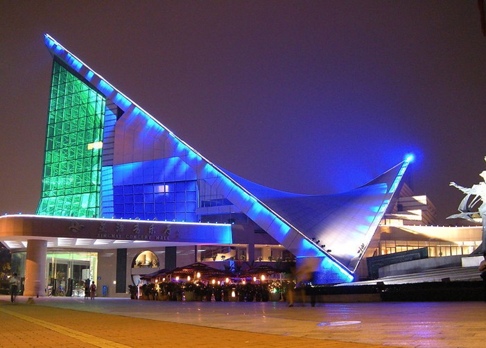 星海音樂(lè)廳位于廣州二沙島,造型奇特的外觀(guān),富于現(xiàn)代感,尤如江邊欲飛的一只天鵝,與藍(lán)天碧水渾然一體,形成一道瑰麗的風(fēng)景線(xiàn)。這座以人民音樂(lè)家冼星海的名字命名的音樂(lè)廳,占地1.4萬(wàn)平方米,建筑面積1. 8萬(wàn)平方米,設(shè)有1500座位的交響樂(lè)演奏大廳、460座位的室內(nèi)樂(lè)演奏廳,100 座位的視聽(tīng)欣賞室,和4800平方米的音樂(lè)文化廣場(chǎng)。整體建筑為雙曲拋物面鋼筋混凝土殼體,室內(nèi)不吊天花板,做到建筑空間與聲學(xué)空間融為一體。星海音樂(lè)廳總投資達(dá)2.5億元,是我國(guó)目前規(guī)模最大,設(shè)備最先進(jìn),功能完備,具有國(guó)際水平的音樂(lè)廳。