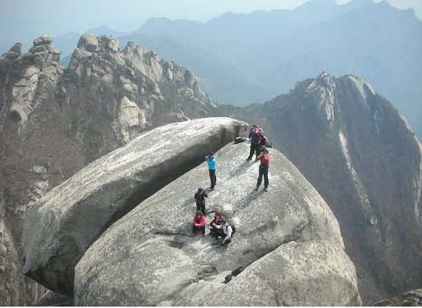 北漢山位于韓國(guó)首都首爾北面,其名字意為北面最大的山,也被稱(chēng)為三角山、負(fù)兒岳。巨大花崗巖形成陡峭曲線是北漢山的最大特點(diǎn),高聳的巖峰和巖峰間流淌著的清澈溪谷斷然可見(jiàn)。山峰千姿百態(tài),其中有836.5m的白云峰,巖峰和樹(shù)木之間生存有1,300余種動(dòng)植物。巖峰中的第一高峰是仁壽峰的奇巖,世界聞名的懸崖仁壽峰達(dá)200m以上,光是路線就有100多個(gè)。站在白云臺(tái)頂上,透過(guò)云層,漢城和漢江一收眼底。