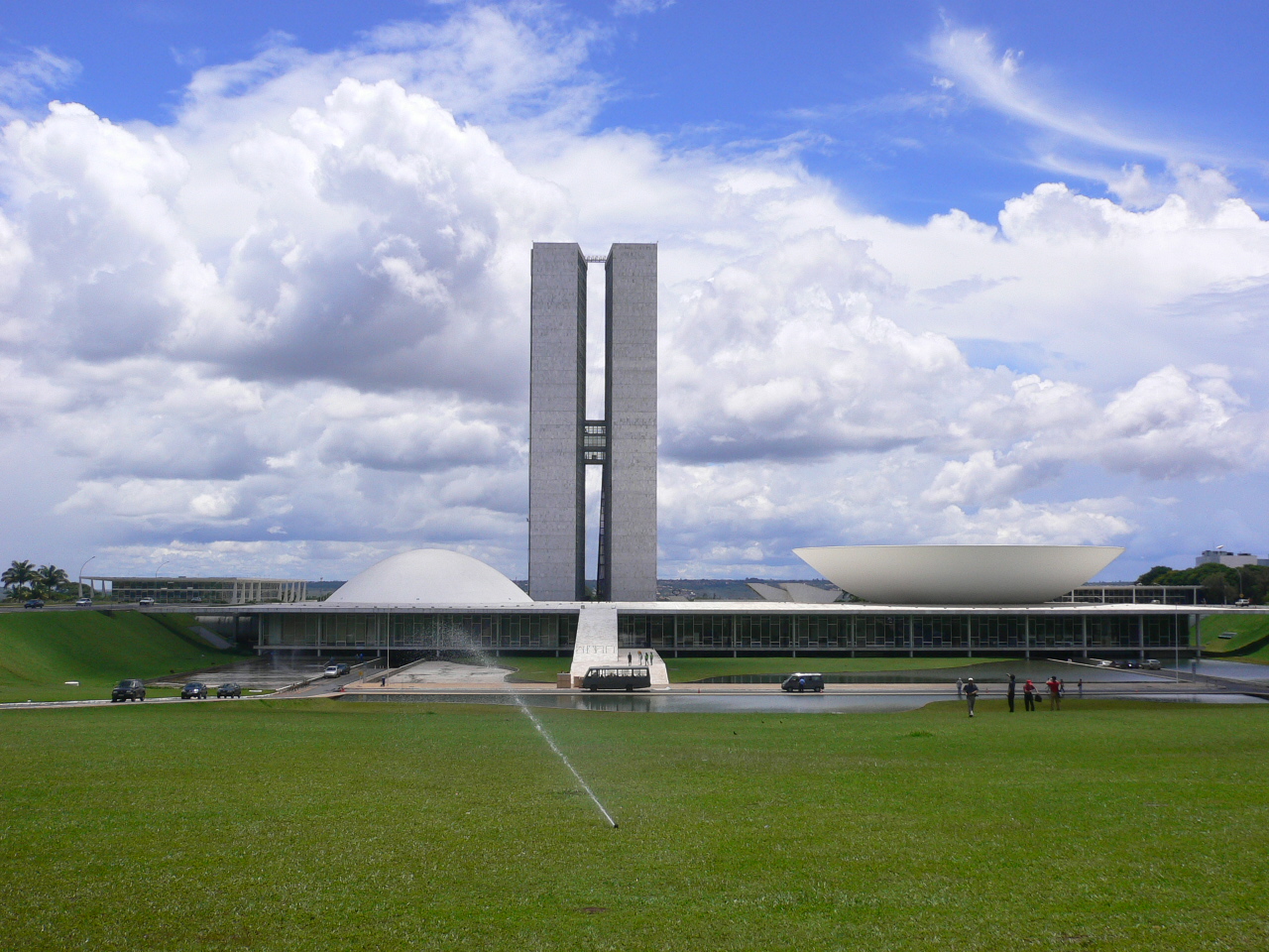 國會大廈的兩座樓并立,中間有過道相連,成“H”形。“H”是葡萄牙文“人類”的第一個字母,因此這個造型寓意“以人為本”和“人類主宰世界”。國會大廈前的平臺上有兩只碩大的“碗”,一只碗口朝上,是聯(lián)邦眾議院的會議廳,因為眾議院開會時向公眾開放;一只碗口朝下,是參議院的會議廳,因為參議院審議的議題常常涉及國家機密。