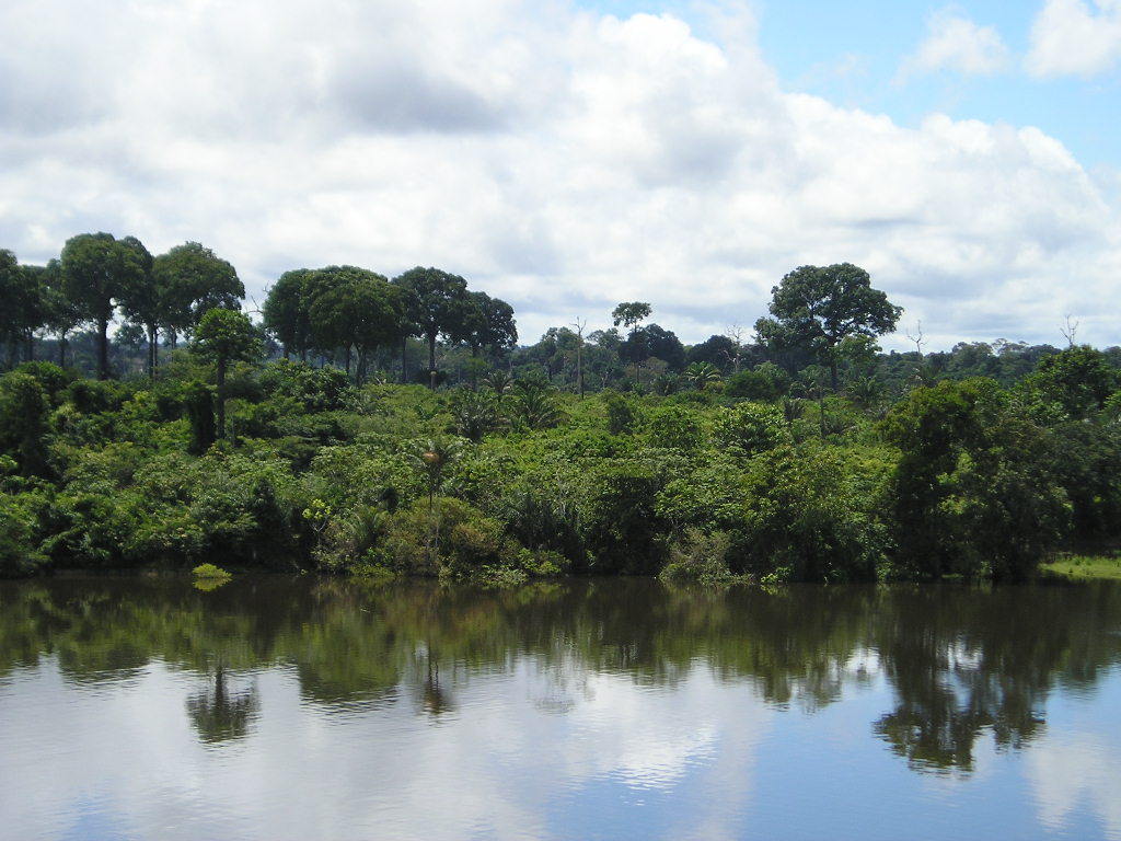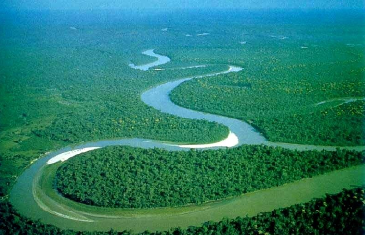 亞馬遜河中游流經(jīng)秘魯、哥倫比亞、巴西、全長約為2200千米。在巴西北部,亞馬遜河水深45米,河寬3000米,流速緩慢;河中島洲錯列、河道呈網(wǎng)狀分布,兩岸河漫灘寬30~100千米,地勢低下,湖沿密布,排水不暢;河流兩側(cè)支流眾多,都發(fā)源于安第斯山東坡,呈羽狀分布。至中游末端,河寬至11千米,河深99米。