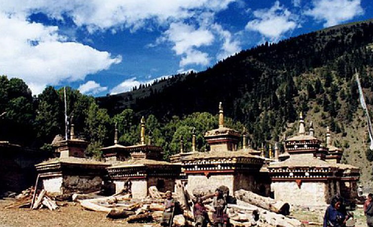 卡瑪多塔林位于類烏齊縣國道317線右側(cè),距縣城25公里。塔林依山位傍水、風(fēng)景秀麗、古木參天、蒼松翠柏、四季常青。在蔥郁翠柏中有一座別致的小經(jīng)堂,主供蓮花生大師像,左右各豎有幾根高大的轉(zhuǎn)經(jīng)筒。傳說,過去這兒有108個塔,現(xiàn)已恢復(fù)和修建的塔有幾十座。其造型各異,別具一格,既有要求嚴(yán)格的八佛塔,也有方形怪塔;既有幾米高的大塔,也有不到三米的小塔。