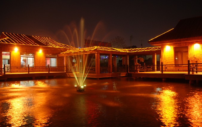 江北水寨系東昌湖綜合開(kāi)發(fā)的重點(diǎn)項(xiàng)目之一,在借鑒眾多湖上竹寨建筑風(fēng)格和模式的基礎(chǔ)上,結(jié)合東昌湖自身特點(diǎn),大膽進(jìn)行了調(diào)整和改善,使其布局更加合理,形式更加活潑,功能更加齊全,風(fēng)格更具特色。版權(quán)所有山東聊城聊之旅國(guó)際旅行社有限公司,轉(zhuǎn)載必究!整個(gè)建筑由棧橋、回廊、亭臺(tái)軒榭組成。內(nèi)置可容70余人的餐會(huì)廳一座,另有10間餐廳、其中5間可供游人作為垂釣包廂,前后門(mén)貫通,面湖可放鉤垂釣,大廳與包廂之間棧橋相連,中間為一露天廣廳,可供游客輕歌漫舞。江北水寨樓臺(tái)軒榭,互相映襯,湖光城影,相映成趣,建筑風(fēng)格古樸典雅、錯(cuò)落有致,極具江南水鄉(xiāng)之風(fēng)彩。