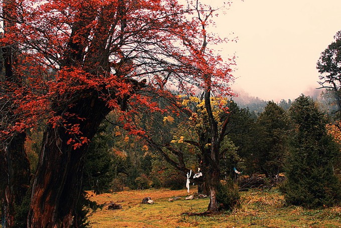 美麗的南伊溝離米林縣城有20公里,縱深40多公里,溝內(nèi)景色綺麗,有保護(hù)完好的天然原始森林和植被,既有高大的針潤葉混交林,又有牧草豐盛的草甸。群山環(huán)抱,云霧繚繞,春天滿山的桃花杜鵑,秋天滿山的紅葉。景區(qū)內(nèi)有珞巴民俗村、藏藥觀賞園、千年云杉王、扎貢原始森林、甘露洞(藏醫(yī)藥鼻祖玉妥•云丹貢布大師行醫(yī)授徒之地)等景點(diǎn)。