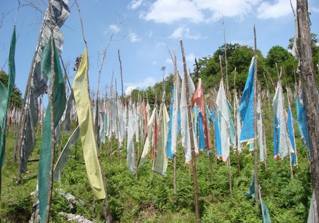 位于墨脫村南則瑪拉山上。是墨脫最大的寺院。建寺時(shí)間是在門巴東遷后不久,距今約8代人。據(jù)傳是由甘布寺中的活佛甘布建筑的,最初是一座有12面墻和東西南北四門的石木結(jié)構(gòu)三層建筑,內(nèi)有鍍金銅佛像多座。1950年毀于地震,后重修為東西兩門建筑。仁欽崩寺的建寺時(shí)間是在門巴東遷后不久,距今約8代人。這一建筑物很有特色,值得一看,寺院內(nèi)外景色優(yōu)美,古木鮮花將這里裝扮的古樸而典雅,讓人沉浸在這古老的文化和美麗的景色之中。