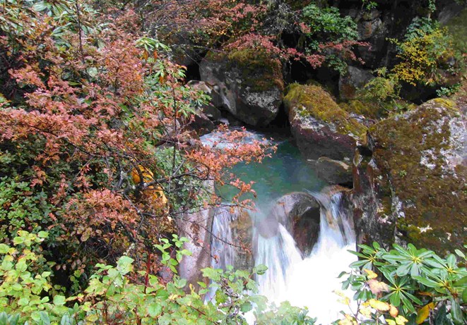 瀑布三層相疊,落差高達400米,又名“三疊泉”。層疊一層,落差高達400余公尺。它穿云越霧,由山巔奔騰飛瀉,跌落于幽河深谷。多層瀑布的最上層,是從高入云霄的雪峰中直瀉而下,激起滿谷的蒙蒙水氣,“隆隆水聲”在整個山谷轟鳴。第二層瀑布水勢急,瀑面寬大,從高處的綠樹叢中緩緩流出,然后急瀉而下。最下層斜沖到一巨石上,曲折而瀉,直至多雄拉河,形成一個個深潭。多層瀑布由于落差大,陽光一照,瀑邊映出一條條五彩繽紛的彩虹,將河谷兩岸的風(fēng)光打扮得格外絢麗。