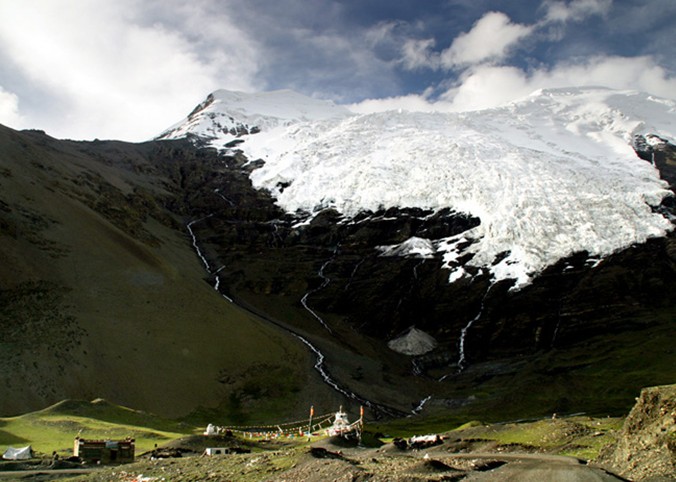 卡若拉冰川背靠西藏四大高峰之一的乃欽康桑峰(7191米)南坡,冰川上部為一坡度較緩的冰帽,下部為兩個(gè)呈懸冰川形式的冰舌。東冰舌長3公里,寬750米,冰舌末端高5233米;西冰舌長4.5公里,寬1.5公里,冰舌末端高5145米。整個(gè)冰川面積為9.4平方公里。