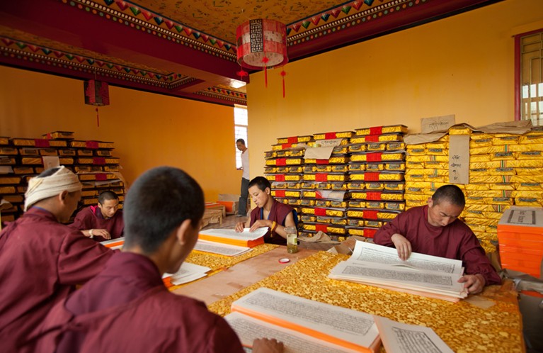 納塘寺設(shè)有著名的“納塘印經(jīng)院”,它是西藏最早的一座印經(jīng)院。據(jù)古代藏文史籍記載:元初武宗至大年間(1308~1311),國(guó)師尊巴絳央委托前藏歐巴•洛賽益西等人編纂藏文《在藏經(jīng)》(即:《甘珠爾》和《丹珠爾》),并派洛賽益西駐納塘寺。洛賽益西與譯師索南沃賽、若南秋崩一起將藏區(qū)所有的《甘珠爾》、《丹珠爾》各種抄本搜集齊全,整理編輯了藏文《大藏經(jīng)》抄本,存放于納塘寺。