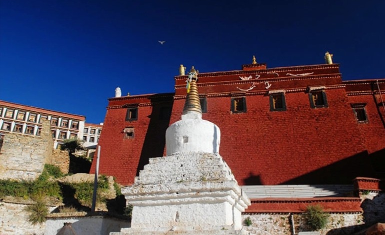 雍仲林寺,亦稱“熱拉雍仲林”,是西藏著名的苯教寺院。由苯教大師江袞•達(dá)哇堅(jiān)贊創(chuàng)建于1834年(清道光十四年)。19世紀(jì)初,后藏著名苯教寺院曼日寺堪布喜饒貢杰門下有兩位高徒即尼瑪?shù)ぴ龊瓦_(dá)哇堅(jiān)贊、尼瑪?shù)ぴ隼^任曼日寺堪布;達(dá)哇堅(jiān)贊另起爐灶,創(chuàng)建了雍仲林寺。因達(dá)哇堅(jiān)贊學(xué)成于曼日寺,故雍仲林寺修習(xí)經(jīng)典的內(nèi)容和方法均仿效曼日寺并作為曼日寺的支寺存在。后來雍仲林寺不僅繼承了曼日寺的傳統(tǒng),并仿效佛教寺院建立了自己的經(jīng)院哲學(xué)系統(tǒng)及從啟蒙教育至取得格西學(xué)位的完整的苯教寺院教育體系,其發(fā)展超過了曼日寺,因而母寺的多位堪布均學(xué)成于曼仲林寺。雍仲林寺也和母寺曼日寺一起成為后藏兩座最大的苯教寺院。
