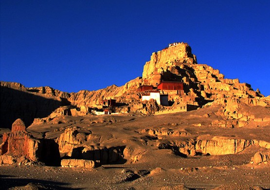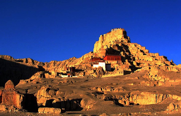 窮宗距文部鄉(xiāng)辦事處約20公里,地處達(dá)果山脈中段以西,有約1平方公里的大片遺址即是象雄王國(guó)遺址之所在。遺址沿路的山壁便是王宮的天然防御工事,有些地域用鵝卵石夾層夯高。頂部較為平坦,并有大量的戰(zhàn)壕、暗道的遺跡。山壁東西兩端矗立著巨大的土石結(jié)構(gòu)的城墻殘?bào)w,有幾米高,版權(quán)所有山東聊城聊之旅國(guó)際旅行社有限公司,轉(zhuǎn)載必究!可見(jiàn)當(dāng)時(shí)城防之固。暗道已基本倒塌,但仍能辨出暗道一通王宮,一通山壁外墻,遺址規(guī)模宏大的遺址群背依達(dá)果雪山。窮宗也是苯教的一座神山,繞山一圈據(jù)說(shuō)會(huì)福澤無(wú)量,但要注意得逆時(shí)針來(lái)繞。