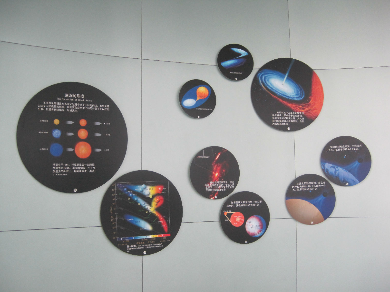 太陽(yáng)展示廳,展覽面積300米,以展出太陽(yáng)和太陽(yáng)系內(nèi)容為主。主要展項(xiàng)內(nèi)容有從太陽(yáng)真空望遠(yuǎn)鏡觀測(cè)接收而來的1.8米太陽(yáng)白光投影像;174毫米手描太陽(yáng)黑子白光全日面投影像;艷麗多彩的太陽(yáng)光譜投影像;太陽(yáng)白光、太陽(yáng)色球全日面和太陽(yáng)局部活動(dòng)區(qū)的CCD電視圖象等。北京天文館設(shè)施包括天象廳,門廳,展覽廳,報(bào)告廳,天文臺(tái)等。北京天文館是中國(guó)乃至亞洲大陸的第一座大型天文館,目前仍是大陸唯一的大型專業(yè)天文館。2004年12月12日,北京天文館新館落成,設(shè)施包括數(shù)字宇宙劇場(chǎng),3D影院 ,4D影院,太陽(yáng)展廳等。