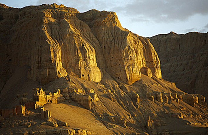 象雄與古格,兩個(gè)一度各領(lǐng)風(fēng)流的西部古國(guó),從此消逝在歷史的煙云之中,令考古學(xué)家、歷史學(xué)家、民族學(xué)家們?cè)诤坪驳氖泛V锌嗫嗨褜ぃD用科學(xué)的證據(jù)來(lái)復(fù)原其歷史的舊貌。關(guān)于古格王國(guó),雖然各國(guó)的歷史學(xué)家與考古學(xué)家曾作過(guò)大量的調(diào)查研究工作,但也有許多問(wèn)題時(shí)至今日仍然藏在云山霧海之中未能得解。其中,一個(gè)最令考古學(xué)家感興趣的問(wèn)題在于:當(dāng)年這個(gè)王國(guó)最強(qiáng)盛時(shí),一度號(hào)稱(chēng)達(dá)到十萬(wàn)之眾,但古格王國(guó)都城遺址扎不讓所有能住人的洞窟加起來(lái),也只能容納兩千人左右,這不能不讓學(xué)者們推測(cè),在這片神秘的土地上,一定還有無(wú)數(shù)個(gè)像扎不讓這樣的古城堡隱藏在大漠荒原深處,被歷史的風(fēng)塵所掩蓋。