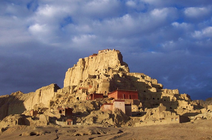 在距今約1100年前,同樣的余暉中,佇立著的卻是強(qiáng)盛一時(shí)的象雄王國(guó)和古格王國(guó)的宮殿和寺院。從現(xiàn)存的殘頹遺址可以想象得到當(dāng)時(shí)場(chǎng)面的巨大,遠(yuǎn)非眼前這般光景可比。