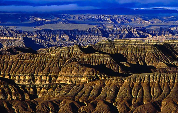 立于盆地之中,旅者可以深深體會(huì)到大自然的偉力,更為它的造化所震撼。這扎達(dá)盆地里獨(dú)特的自然地貌、這地球上規(guī)模最大的一片土林;峽谷與土林層層疊疊,綿延不絕。這是一種獨(dú)特的“水平巖層地貌”,是高平的山頂被縱向切割侵蝕成的一條條深深的溝壑,變成了土的林海,但人們更愿意相信,這是一種藝術(shù),一種大地的藝術(shù),就好像是大自然特意造出來(lái)、專門是為了向人類展示其魅力似的。這就不難理解為什么那么多的各學(xué)科的科學(xué)工作者——包括人文工作者——都迷戀著扎達(dá)的土林。