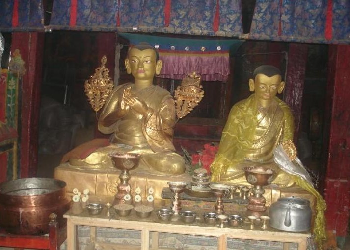科熟王信仰佛教,用七大包銀子請(qǐng)尼泊和克什米爾工匠於中尼邊境協(xié)噶爾(今定日縣所在地)制作了一尊世間罕見(jiàn)的文殊菩薩像。用車(chē)運(yùn)回王宮途中,在杰瑪塘被有著神奇?zhèn)髡f(shuō)的圣石阿莫穆噶所阻,相傳菩薩像開(kāi)口說(shuō)「科加、科加」(意為依附或扎根於此),故科熟王遂命圍繞圣石建筑了造型奇特的殿堂,將文殊像供於殿內(nèi)圣石之上,是為科加寺的最早建筑。拉德王時(shí),用大量珍貴珠寶和白銀,為此像制作有三十朵蓮花的寶座,并為該寺修建大經(jīng)學(xué)友,舉行了大規(guī)模的開(kāi)光慶典。貢德王碼中文卡執(zhí)政時(shí)助該寺制作銀質(zhì)的金剛持和觀世音像;供於蓮花寶座的兩端,形成科加寺有名的「三至尊」。因該寺位於孔雀河岸邊,為防止洪水危害,扎西德贊執(zhí)政時(shí),動(dòng)員信眾修建了防洪堤壩,開(kāi)古格王朝筑提之先河。後來(lái)歷世古格王及其後裔陸續(xù)添帛佛像、經(jīng)籍、供器,維修或建殿堂,使該寺文物豐富,除憶提出及者外,還有古格王朝時(shí)期的金質(zhì)度母像、響銅釋迦像、《甘珠爾》、《丹珠爾》大藏經(jīng)、整套《薩迦五祖遺高訓(xùn)》等,據(jù)說(shuō)還有極為珍貴的「前宏期」翻譯的《甘珠爾》經(jīng)。