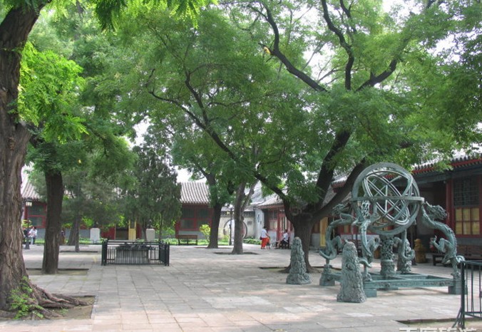 北京古觀象臺在明朝時被稱為“觀星臺”,臺上陳設有簡儀、渾儀和渾象等大型天文儀器,臺下陳設有圭表和漏壺。清代時觀星臺改稱“觀象臺”,辛亥革命后改為中央觀星臺。