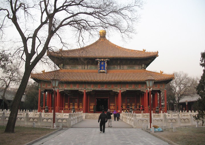 全國(guó)重點(diǎn)文物保護(hù)單位。位于北京城內(nèi)東城區(qū)國(guó)子監(jiān)街。占地2.2萬(wàn)平方米。歷代多次重修,為元、明、清三代祭孔建筑,又名"先師廟"。廟坐北朝南,大門稱先師門,仍保持元代風(fēng)格。前有琉璃壁及下馬碑,進(jìn)門東西有碑亭、神廚、神庫(kù)等,并立有元、明、清三代進(jìn)士題名碑118 方,題刻歷代進(jìn)士5萬(wàn)多名。進(jìn)大成門至第二進(jìn)院,正殿名大成殿,為孔廟主體建筑,面闊9間,進(jìn)深5間,黃琉璃筒瓦重檐廡殿頂,殿前月臺(tái)三出陛,殿內(nèi)供奉孔子及"四配"、"十二哲"。殿前有600余年樹(shù)齡的古柏一株,名"除奸柏",亦名"觸奸柏"。有古井一口,清高宗賜名"硯水湖"。大成殿后有崇圣祠,自成院落,為祭祀孔子先祖之地。今辟為首都博物館,展出北京地區(qū)出土的歷代珍貴文物。