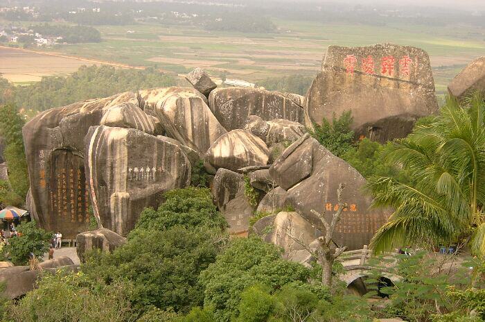 電視劇連續(xù)劇《紅樓夢》片頭中有一塊神姿仙態(tài)的“飛來石”,它就在被稱為“海南第一山”的東山嶺上。東山嶺風景區(qū)在萬寧市東2公里處,因三峰并峙,形似筆架,歷史上又叫筆架山,是海南開發(fā)較早的旅游景點之一。曾與五公祠、鹿回頭、天涯海角等景點齊名,素有“海南第一山”之稱。東山嶺面積有10平方公里,海拔只有184米高的東山嶺遍山都是奇石,前面提到過的那塊石頭就是“一線天”勝景之處的風動石,它重達百余噸,能在海風的吹拂和人力的推搖下產(chǎn)生晃動。東山嶺瀕臨南海,景色十分秀麗。嶺上還有多處古跡和廟宇,均為省重點保護文物,其中潮音寺尤為海外僑胞重視。