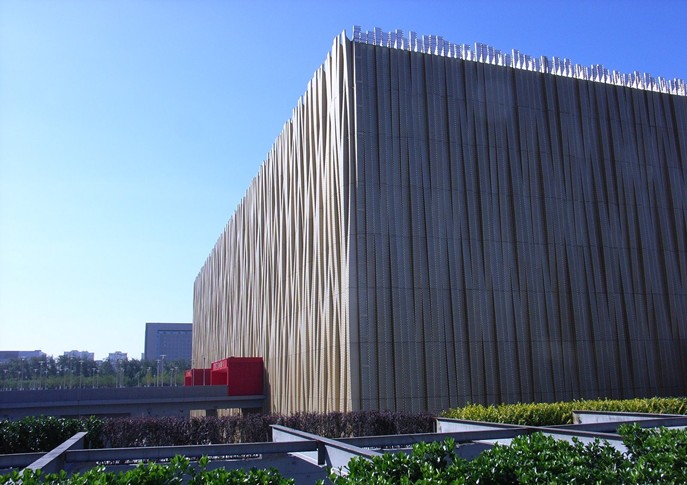 從觀眾席出口出來,就回到了中庭觀眾休息區(qū)。正午時分,外界強(qiáng)烈的陽光被遮陽百葉窗擋住,休息區(qū)內(nèi)的溫度涼爽適宜。其實(shí)室內(nèi)空調(diào)并沒有開啟,場館的生態(tài)型呼吸式雙層幕墻才是室內(nèi)保持涼爽的關(guān)鍵。這種呼吸式雙層幕墻是國內(nèi)節(jié)能技術(shù)比較先進(jìn)的,在雙層幕墻之間安裝有溫度感應(yīng)裝置,可以根據(jù)溫度的變化,把冷風(fēng)和熱風(fēng)與室內(nèi)空氣進(jìn)行交換,實(shí)現(xiàn)自然通風(fēng)對流,適度調(diào)節(jié)室內(nèi)溫度,減少了空調(diào)制冷和取暖的耗能。