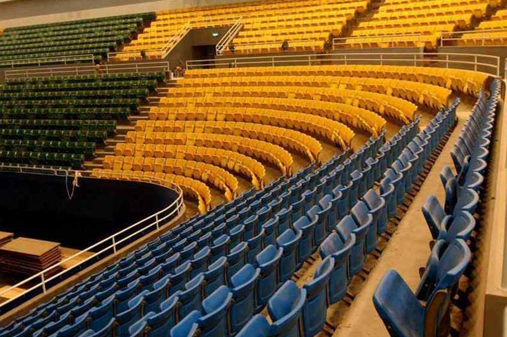 比賽場地為88×40米,凈高20.65米??扇菁{觀眾18000人。