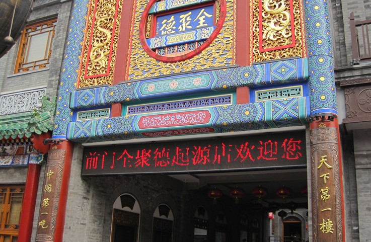 大柵欄是前門商業(yè)區(qū)的中心,泛指大柵欄街、廊房頭條、糧食店街和煤市街。明清時(shí)期入夜實(shí)行宵禁,在街頭巷尾設(shè)置柵欄,晝開(kāi)夜閉,大柵欄因此得名。經(jīng)過(guò)近百年的發(fā)展,前門大柵欄集中了綢布店、藥店、鞋店、餐館等數(shù)百家店鋪和戲院。廊房頭條、廊房二條曾是珠寶玉器市場(chǎng);珠寶市街集中了二十九家官爐房,熔鑄銀元寶;錢市胡同、施家胡同、西沿河一帶開(kāi)設(shè)了許多錢市利銀號(hào);而王廣福斜街、陜西巷等八條胡同則是妓院集中的地方,俗稱“八大胡同”。到1928年前門商業(yè)區(qū)開(kāi)始走下坡路之前,大柵欄一帶一直是老北京的商賈繁華之地,許多著名的老字號(hào)就發(fā)源于此,比如全聚德烤鴨店、瑞蚨祥綢布店、同仁堂藥鋪、六必居醬菜園等,直到今天仍然長(zhǎng)盛不衰。