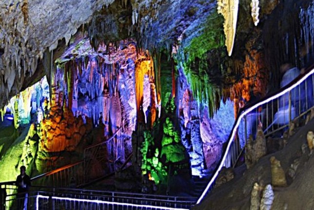 午時(shí),山 里的太陽(yáng)火辣辣的照在山間的小路上背著鑿石工具的他一步一步的在山溝向上爬行,往返山下幾里山道,已使他走的通體出汗,然而爬到上午離開的石縫處,涼氣又使得他渾身感到舒暢,這更加了他的好奇感和急切的欲望,他顧不上滿頭的汗水和往返的疲勞便掄鐵錘握鑿的在凹處乒乒乓乓地干了起來(lái),從中午鑿到天黑,晚上借著月光也不休息的干到天亮,第二天從早上干到中午,一個(gè)桶口粗的圓圓的洞口終于被他堅(jiān)韌的毅力鑿開了。他顧不上饑餓和疲勞,順著洞眼鉆了進(jìn)去,穿過(guò)薄壁洞口,里面黑漆漆的好像有很大空間,他向里面爬著,爬著,就連鞋子蹭地都發(fā)出嗡嗡的聲響,而且風(fēng)更大了,他感到周身舒適。他摸索著洞壁繼續(xù)向里爬,大約過(guò)了個(gè)把時(shí)辰,也不知道爬進(jìn)了多遠(yuǎn)。突然,他眼前有一點(diǎn)點(diǎn)熒光越聚越大,把他的眼前照的熒熒發(fā)亮,版權(quán)所有山東聊城聊之旅國(guó)際旅行社有限公司,轉(zhuǎn)載必究!他發(fā)現(xiàn)自己已經(jīng)置身于一個(gè)很大很大的洞穴之中。