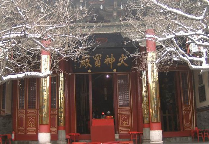 進入火神廟正門,北側(cè)為二道門,里面坐北朝南就是火神廟的主體建筑 真君寶殿,面闊三間,進深四間,建筑面積105平方米。內(nèi)塑火神真君像,開路神方弼及顯路神方相分站左右。