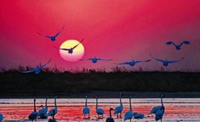 古詩曰:黃河之水天上來,奔流到海不復(fù)回。而詩中所指黃河入??诰褪谴颂幜?,它是因1855年黃河改道而成,地處渤海與萊州彎的交匯處,黃河千年的流淌與沉淀,在它的入??诔删土酥袊顝V闊、最年輕的濕地生態(tài)系統(tǒng),這就是黃河口濕地生態(tài)園,屬于高度特異性旅游資源,有很強的觀賞性。因其獨特的濕地生態(tài)環(huán)境,得天獨厚的自然條件,園內(nèi)的生物資源非常豐富,有刺槐林1.2萬公頃,各種生物1917種,其中水生動物641種,屬于國家一級保護的有達氏鱘、白鱘兩種;這里也是鳥類的棲息地,鳥類主要有丹頂鶴、白頭鶴、白鸛、中華秋沙鴨、金雕、白尾海雕等多種一級重點保護鳥類,國家二級保護的鳥類與30多種,而且隨著我們進一步對濕地的恢復(fù)和保護,將會有越來越多的鳥類停留在這里,成為鳥類生活的樂園。是集生態(tài)原始旅游、濕地科學(xué)考察、鳥類研究、愛國主義教育于一體的旅游地。