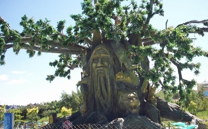 神秘古樹象征著人與自然和諧共處的神秘古樹,其實蘊藏著一段感人的傳說…… 久遠(yuǎn)前,這里曾是一片山谷與密林,所有的動物都和諧地生活著。但這里每隔一定的年頭就會發(fā)生自然災(zāi)難,山上的石頭會迸裂開來,洪水噴涌而過,幾乎吞走所有動物。年長的動物為了躲避災(zāi)難保護(hù)子孫,尋找到一棵幾千年依舊挺拔茂盛、不畏災(zāi)難的古樹。當(dāng)災(zāi)難爆發(fā)時,動物們都環(huán)抱著古樹,期望依靠古樹的力量抵御洪水的沖擊。年長的動物們卻用自己的血肉之軀緊緊的包圍著古樹與子孫,寧可粉身碎骨也抵抗著迸裂的山石。山洪愈加洶涌,為了組成這個嚴(yán)實的“保護(hù)墻”,無數(shù)的動物長輩獻(xiàn)出了生命,更有無數(shù)的年長動物補(bǔ)充上去。