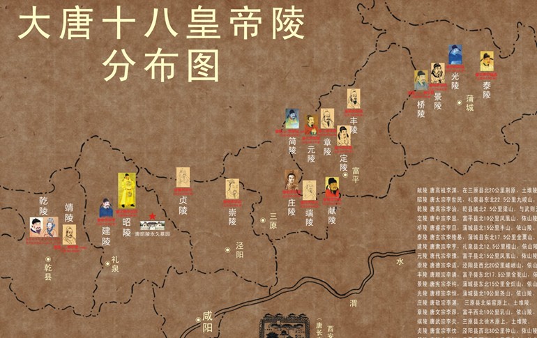 昭陵陵園周長(zhǎng)60公里,占地面積200平方公里,共有陪葬墓180余座,被譽(yù)為“天下名陵”,是我國(guó)帝王陵園中面積最大、陪葬墓最多的一座,也是唐代具有代表性的一座帝王陵墓。從唐貞觀十年(公元636年)太宗文德皇后長(zhǎng)孫氏首葬到開(kāi)元二十九年(公元743年),昭陵陵園建設(shè)持續(xù)了107年之久,地上地下遺存了大量的文物。它是初唐走向盛唐的實(shí)物見(jiàn)證,是我們了解、研究唐代乃至中國(guó)封建社會(huì)政治、經(jīng)濟(jì)、文化難得的文物寶庫(kù)。