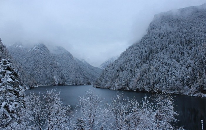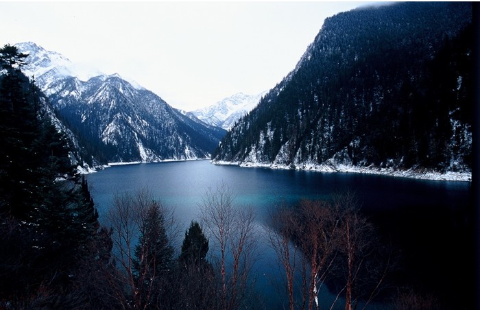 長海海拔3060米,最高處4457米,面積約200萬平方米。長約8公里,順山彎去,頭深藏在層巒疊嶂的山谷之中,是九寨溝最大的海子。海子對面,雪峰皚皚,冰斗、“U”字谷等典型冰川景觀,歷歷在目,岸旁林木葉茂,一眼望去,水似明鏡,巍巍雪峰,沐浴在藍(lán)天白云之中,壯觀奇麗。此湖區(qū)水面大,但無地表出水口,夏秋暴雨,水不溢堤,冬春久旱,亦不干涸。藏胞贊美它是“裝不滿、漏不干的寶葫蘆”。隆冬時(shí)節(jié),冰凍厚達(dá)60厘米,傳有怪獸出沒。
