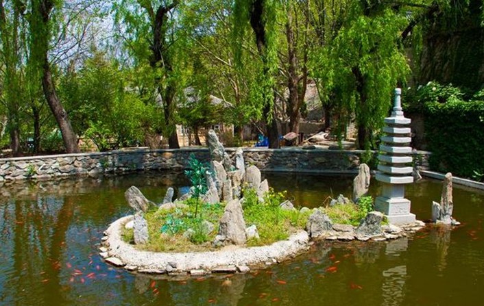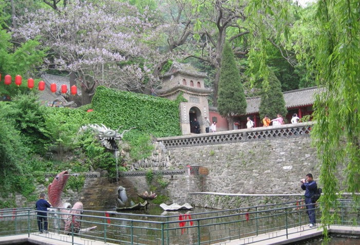 位于大黑山西北麓,是大連地區(qū)著名的道教廟宇,又稱響水寺、韻水寺。相傳建于唐代,后世特別是清代曾多次重修。響水觀依山而建,為歇山或二層磚砌飛檐結(jié)構(gòu),山門配以赭紅色垣墻,再加上門外一道坡度較大的臺階,使廟宇顯得巍峨莊嚴(yán)。 響水觀分南北兩院,進(jìn)山門即是正殿后土殿。這是一座近十米高的硬山式三楹出廈殿堂,青磚灰瓦,雕梁畫棟,富麗堂皇。殿內(nèi)供奉著后土、女蝸、觀音等神圣。殿前院內(nèi)有池塘和五棵合抱粗的大樹,清水綠蔭,滿院生涼。北院有精舍數(shù)椽,紅色木柱木棱花窗,幽靜古樸,是道士們的住處和客舍。 響水觀正殿右側(cè)有一個40米深的天然洞穴,叫做瑤琴洞,洞內(nèi)有清泉一泓流出,潺潺作響。泉水流出后,自南而北從嵌在寺外壁上的龍口中瀉下,版權(quán)所有山東聊城聊之旅國際旅行社有限公司,轉(zhuǎn)載必究!激至蹲伏于水塘中的碧蟾口中,嘩嘩作響,飛傳山谷,故名“響水觀”。