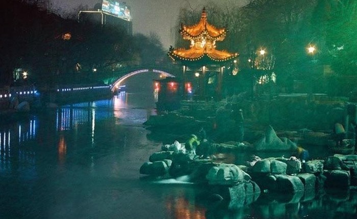 黑虎泉位于南護城河東端南岸。黑虎泉之名,始見于金代的名泉碑。一說名的來源是因岸上原有一“黑虎廟”; 也有的說是因“水激柱石,聲如虎嘯”而得名,因此泉為一天然洞穴,內(nèi)有一巨石盤曲伏臥,上生苔蘚,顯得黑蒼蒼,如猛虎深藏, 泉水從巨石下涌出,激湍撞擊,再加半夜朔風吹入石隙裂縫,酷似虎嘯,故稱黑虎泉??缟献o城河的琵琶橋,便可聽到黑虎泉的汩汩水聲。 越過駝峰造型的琵琶橋上行,經(jīng)過一座四角小涼亭,再穿過游廊繼續(xù)東行,就到了近年新建的一座大涼亭。南面的茶室,供游人休息品茶, 觀賞泉水景色。出茶室,順假山石階而下,即到黑虎泉。