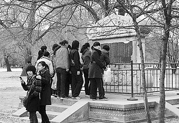 在避暑山莊澄湖北岸、萬樹園南端,與煙雨樓遙遙相對(duì),是一碑帽、碑座齊全的臥碑。用漢白玉雕成,分碑首、碑身、碑座三部分。碑首為卷云意頭式,內(nèi)刻群仙祝壽圖。碑身高0.98米、寬1.98米、厚0.4米,陽(yáng)面鐫刻有乾隆的《綠毯八韻》詩(shī),描寫山莊豐美的水草、綠毯般的天然美景;陰面是乾隆的《平旦》詩(shī),版權(quán)所有山東聊城聊之旅國(guó)際旅行社有限公司,轉(zhuǎn)載必究!詩(shī)中炫耀“清明盛世”,極富政治色彩。