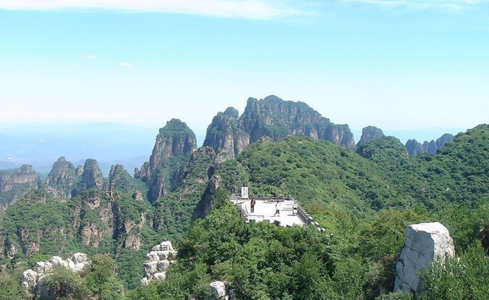 狼牙山位于易縣城西南,山勢險峻,挺拔陡峭,猶如長短不齊的巨齒狼牙,故名“狼牙山”。主峰海拔1700米,抗戰(zhàn)期間,日軍掃蕩狼牙山,為掩護(hù)主力部隊撤退,八路軍戰(zhàn)士馬寶玉、葛振林、宋學(xué)義等五人,重創(chuàng)日偽軍600余人,激戰(zhàn)5小時,打完最后一顆子彈,英勇跳崖。