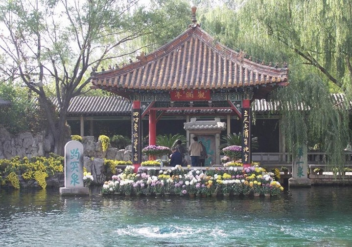 泉水一年四季恒定在攝氏18度左右,嚴(yán)冬,水面上水氣裊裊,像一層薄薄的煙霧,一邊是泉池幽深波光粼粼,一邊是樓閣彩繪,雕梁畫棟,構(gòu)成了一幅奇妙的人間仙境。