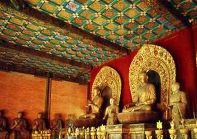 又稱前寺,位于承德市街東的武烈河?xùn)|岸。依山傍水,風(fēng)景秀麗。清康熙五十二年(1713年),諸蒙古王公為慶賀康熙帝60壽辰,上書“奏請”在承德避暑山莊外,圍建一寺院作慶壽盛會之所??滴醯坌廊?ldquo;恩準(zhǔn)”,遂建造了溥仁、溥善二寺。溥善寺早已荒廢,溥仁寺便成康熙年間僅存的廟宇。溥通普,普遍、廣大意,有皇帝深仁厚愛普及天下之意。溥仁寺建筑形制為漢族廟宇的“伽藍(lán)七堂”式,四周有護(hù)墻環(huán)。山門內(nèi)主軸線上布置主殿三座:天王殿、慈云普陰殿、寶相長新殿。天王殿內(nèi)供佛像 6尊:彌勒佛、韋馱天將和四大天王。慈云普陰殿,單檐歇山頂,描金彩繪,雕梁畫棟,光彩奪目。殿內(nèi)供過去佛迦葉佛、現(xiàn)在佛釋迦牟尼佛、未來佛彌勒佛。釋迦佛兩側(cè)為其兩大弟子迦葉和阿難。東西壇上供姿態(tài)各異的十八羅漢。天花板上有密宗六字真言。寶相長新殿,版權(quán)所有山東聊城聊之旅國際旅行社有限公司,轉(zhuǎn)載必究!單檐硬山布瓦頂,檐柱描金彩繪。內(nèi)供 9尊無量壽佛。