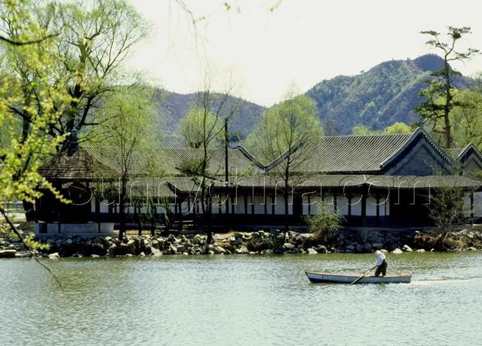 位于避暑山莊南部松鶴清樾北山峰頂。是“康熙三十六景”第十二景。為一方亭。每當夕陽西照,漫天紅紫。此時,東山的磬錘峰金碧輝煌,宏偉壯麗??滴?、乾隆、嘉慶曾在近黃昏時率文武百官及少數(shù)民族王公貴族,登亭舉行蒙古風味的野宴,并觀看磬錘峰落日余下的雄奇俊秀的景象。