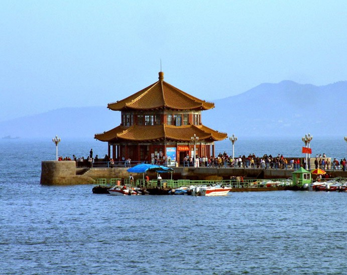 1988年,小青島開辟為公園,并正式對外開放,全島以栽植黑松為主的基礎(chǔ)上,還栽有櫻花、碧桃、石榴、木槿、紫薇等春、夏、秋三季開花的觀賞植物,在島上地勢較為平坦的南部有一個非常小巧的廣場,廣場中間立有手抱古琴、目視海面的“琴女”雕塑,從她凝視的目光之中,足以看出她對愛情的忠貞不渝,凄美動聽的古老神話,為人們所代代傳唱,感動著一代代后來之人。