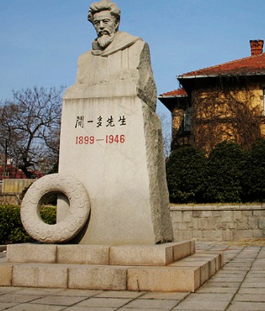 解放后,聞一多先生的故居劃在原青島大學(xué)(現(xiàn)青島海洋大學(xué))校園內(nèi),并命名為“一多樓”。1978年,海洋大學(xué)將“一多樓”辟為“聞一多故居展室”,展室陳列有聞一多先生的著作及其它一些紀(jì)念物。展室匾額“一多樓”,由中國(guó)書法協(xié)會(huì)主席舒同題寫。小樓前建有一花壇,花壇正中豎立有聞一多先生半身大理石塑像,座上刻有聞一多先生的學(xué)生、著名詩(shī)人臧克家撰寫的碑文。