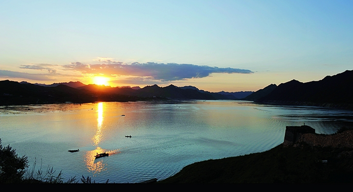 塞外蟠龍湖旅游風(fēng)景區(qū)(潘家口水庫)位于承德市寬城滿族自治縣西部,距寬城縣城25公里,距承德市區(qū)135公里。她是一個(gè)由10萬畝水域,150平方公里的生態(tài)山場和明代長城景觀組成的風(fēng)景區(qū)。是因國家重點(diǎn)“引灤入津”水利樞紐工程--潘家口水庫的建成蓄水而形成的人工湖。因空中鳥瞰湖面恰似一條巨龍婉蜒游動(dòng)而得名。塞外蟠龍湖是鑲嵌在燕山深處、長城腳下的一顆燦爛明珠,也是承秦朝陽旅游線上的一段“黃金水道”,它集人文景觀與自然景觀于一體。來到景區(qū),自湖邊入口登船,緩緩前行,好一派江南水鄉(xiāng)風(fēng)光。小蓬萊島有如仙境,若隱若現(xiàn);蛤蟆石、烏龜島時(shí)起時(shí)伏;一線天、蟠龍洞、十里畫廊鬼斧神工,如在畫中游。山一重,水一重,柳暗又花明。版權(quán)所有山東聊城聊之旅國際旅行社有限公司,轉(zhuǎn)載必究!聞名天下的潘家口水上長城和喜峰口水下長城雄偉而壯觀。古老的灤河水擁關(guān)漫隘,紫塞青峰倒映水中,湖光山色交相輝映。喜峰口水下長城是景區(qū)的精典之作,長城主體部分淹沒水下,僅有局部關(guān)城露出水面,淹沒水下的部分墻體隱約可見。長城沿關(guān)城東西兩側(cè)出水往山脊延伸,這在長城人文景觀中可謂獨(dú)具特色。這里有歷代詩文碑林,有喜峰口來歷的動(dòng)人傳說,有姜文執(zhí)導(dǎo)并主演的電影《鬼子來了》外景基地。原汁原味的長城風(fēng)貌,使這里成為一個(gè)開放式的長城博物館。這里的長城使您每到一處都能觸摸到千年歷史,遙想當(dāng)年金戈鐵馬,鼙鼓滄桑,低吟一首《飲馬長城窟行》;目光搜尋著城墻的道道彈痕,耳畔響起抗日炮火的轟鳴,一曲雄壯的《大刀進(jìn)行曲》引您穿越時(shí)空,領(lǐng)略當(dāng)年長城抗戰(zhàn)大刀隊(duì)勇士們的風(fēng)采,民族精神,中華之魂令人振奮不已。