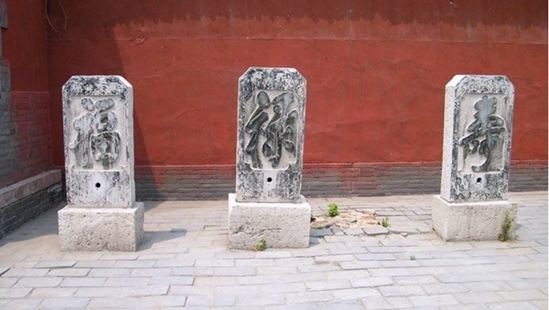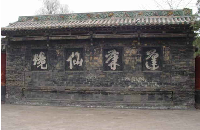 黃粱夢這座建筑,坐北朝南,大門向西。門外是高大的二龍戲珠琉璃照壁。門額上的“邯鄲古觀”四個大字異常醒目。大門內(nèi)八仙閣迎門而立,小巧別致。前院北房為丹房,上懸“神仙洞府”的匾額。丹房前的照壁上有“蓬萊仙境”四個草書大字,筆勢飛舞,蒼勁有力 。