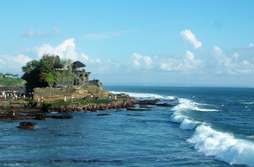 海神廟(Tanah Lot)是巴厘島最重要的海邊廟宇之一,始建于16世紀(jì)。該廟坐落在海邊一塊巨大的巖石上,每逢潮漲之時(shí),巖石被海水包圍,整座寺廟與陸地隔絕,孤零零地矗立在海水中;只在落潮時(shí)才與陸地相連。