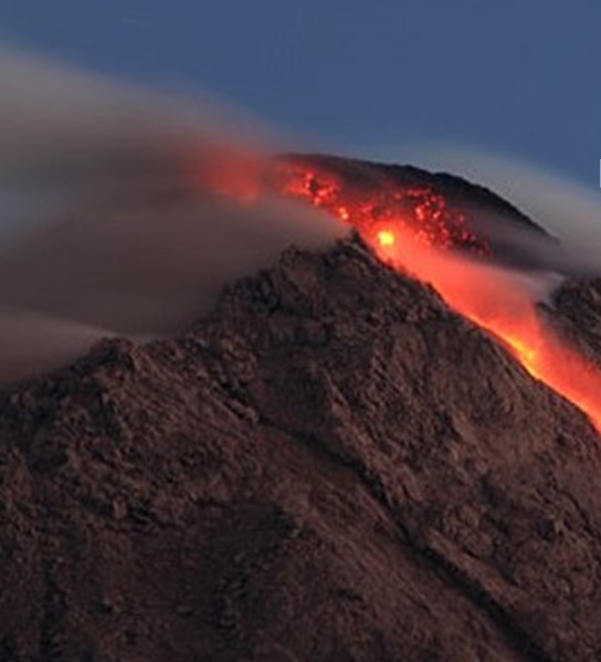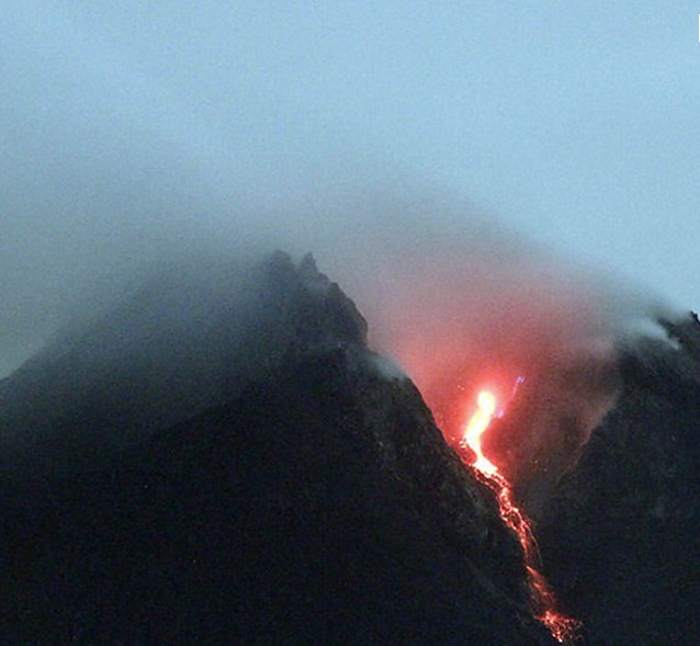 默拉皮火山位于印度尼西亞爪哇島的中部。在日惹東北32公里,海拔2911米,默拉皮意為“不滅之火”,是一個錐形火山,也是印度尼西亞活動性最強(qiáng)的火山,1006年首次爆發(fā),山頂粉碎,毀滅了中爪島的一個王國。埋沒世界七大奇觀之一的婆羅浮屠佛塔。1548年以來又噴發(fā)68次,平均兩三年噴發(fā)一次,每次都有傷亡。火山距離日惹市相當(dāng)近,山麓居住著幾千人,有的村莊在海拔1700米的高處,當(dāng)?shù)鼐用褡裥幸环N古老的儀式,每年都在火山口旁邊牲口供祭,以期安撫默拉皮山的神靈,但死亡依然頻頻降臨。由于其威脅人類居住地的安全,被國際地球化學(xué)和火山學(xué)協(xié)會列為應(yīng)當(dāng)加強(qiáng)監(jiān)督與研究的全球16座火山之一。