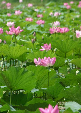 這里,小片荷花略而不計(jì),最壯觀的有3處,微山島西至愛湖這一片荷花,就足有十萬畝,留莊、南陽兩鎮(zhèn)也各有數(shù)萬畝。荷花純系野生,有紅、白兩色。紅的嫣然如霞,白的清麗典雅,面積如此之大的荷花蕩,非但山東省罕見,乃至全國亦不多見,這確是微山湖的一大奇觀。這與被盛贊為“有三秋桂子,十里荷花”的杭州西湖相比,亦有爭勝斗強(qiáng)之概。難怪人們要到這里觀賞過荷花才肯離去。
