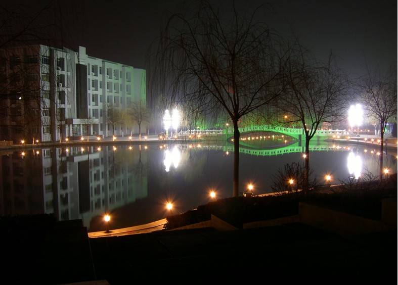 燕鳴湖——身份與精神的延展。燕大之美,在夫燕園一景,燕園之美,存諸燕鳴一湖。“燕”是歡樂(lè)的意思,宴會(huì)的“宴”在古代和這個(gè)字是通用的。它們似乎讓學(xué)校更多了些靈性。湖水倒映著一座“摩天大廈”,光亮的樓身在海風(fēng)中散發(fā)出雄偉的魅力。一座石橋貫通湖面東西,橋下水壩把燕鳴湖分成南北兩個(gè)湖區(qū),把校園點(diǎn)綴得相當(dāng)漂亮。每當(dāng)?shù)谝豢|陽(yáng)光灑向湖面,就看到眾多學(xué)子在湖邊晨讀;每當(dāng)夜晚降臨,燕鳴湖更是成了同學(xué)們小聚的天堂,空氣中洋溢著溫馨的氣息。
