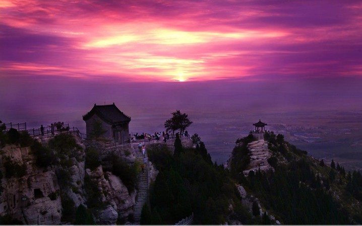 云門山巔“大云頂”,為橫亙東西數(shù)百米的峭壁,兩端建有東西閬風(fēng)亭,有“云門仙境”石碑、迎旭門、天仙玉女祠、玉皇殿等景觀。版權(quán)所有山東聊城聊之旅國(guó)際旅行社有限公司,轉(zhuǎn)載必究!據(jù)史志記載,山頂明代以前建有碧霞祠、關(guān)帝廟、靈官?gòu)R以及東西閬風(fēng)亭,清代建有贈(zèng)怡堂、閑云亭和留弇亭。到解放前夕,山上的建筑多毀于戰(zhàn)火,僅存殘址。近年,重新修復(fù)迎旭門、三元殿、天仙玉女祠和東、西閬風(fēng)亭。山頂西側(cè),有一垂直天然石隙,口如井狀,深不可測(cè),夏秋季節(jié),常有云霧從窟中泛出,故稱“云窟”?!缎咽篮阊浴分?ldquo;李道人獨(dú)步云門”就是說的這個(gè)“云窟”的故事。故事說在隋朝少年件,青州有一個(gè)財(cái)主叫李清,這年正逢六十大壽。他要的壽禮不是金銀財(cái)寶,而是每人一根麻繩。這天讓人把麻繩接起來,一端拴個(gè)筐,他手拿一鑼,坐入筐中,讓人把他漸放石窟中,并約好天到鑼就把他提上來??扇藗?cè)谏线叺攘艘惶煲灰?,也沒聽到鑼聲,把筐拉上來也不見了李清,眾人無(wú)奈只好回家。原來李清在窟底敲鑼,好久也不見 往上拉他,只好順著窟底往里走,走了很長(zhǎng)時(shí)間,看到兩個(gè)白胡子老頭在下棋,便看了起來。版權(quán)所有山東聊城聊之旅國(guó)際旅行社有限公司,轉(zhuǎn)載必究!不知過了多久,下棋老頭臨走時(shí)水果,別打開北面墻上的窗戶??衫钋逶趯?shí)在忍不住后,還是打開了那扇窗戶,發(fā)現(xiàn)窗外就是家鄉(xiāng),他思鄉(xiāng)心切,就從窗戶爬了出來。等他回到家鄉(xiāng),可已物是人非了,無(wú)人識(shí)此君他也不識(shí)人了。