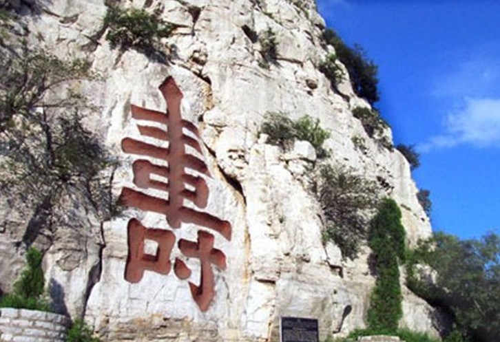 山腰處是“望壽閣”,原為元朝時(shí)期的“靈官?gòu)R”,后毀于戰(zhàn)火,1984年重修。因這里與山頂?shù)?ldquo;壽”字遙遙相望,于是更名為“望壽閣”。閣內(nèi)的正殿建于懸崖之上,高大宏偉,古樸壯觀,正門匾額上書“望壽閣”三個(gè)大字,為著名書法家啟功 題寫。殿內(nèi)供奉福、祿、壽三星,東西兩邊的廂房里供奉關(guān)公和財(cái)神,許多游客喜歡在此進(jìn)香拜神,希冀自己和家人一生平安,萬(wàn)事如意。