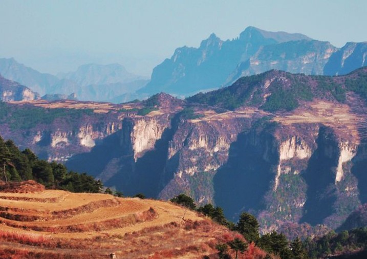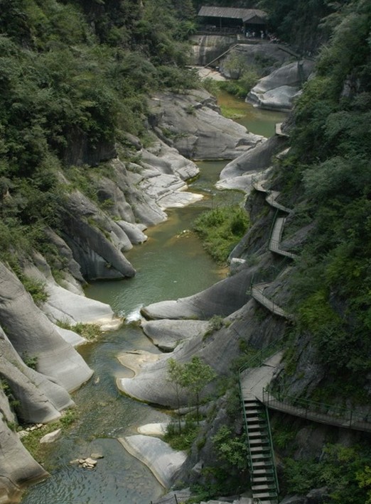 《太平御覽》講:“抱犢山,在上黨東南,高七十丈。” 《隋圖經(jīng)》則說(shuō):“抱犢山四面危絕。”公元4世紀(jì)初時(shí),我國(guó)兩晉時(shí)期著名的道教神學(xué)奠基人葛洪(自號(hào)抱撲子)曾遍游天下名山。他對(duì)太行懷抱中的抱犢山評(píng)價(jià)甚高,以為“稱(chēng)天下名者,南有武夷,北有抱犢。”把紫團(tuán)山與武夷山相提并論,這對(duì)當(dāng)代人來(lái)講,無(wú)論如何是無(wú)法想象的事情。因?yàn)榻裉斓淖蠄F(tuán)山其名聲不但已遠(yuǎn)不如聲名顯赫的南國(guó)武夷,僅以武夷九曲溪那樣秀麗可人且可乘舟游弋的水景而言,即使走遍今日太行峽谷中的每個(gè)角落,恐怕也難以覓得一處了。然而,再把話(huà)說(shuō)回來(lái),你如果真是一個(gè)對(duì)紫團(tuán)山的歷史有所了解的人,特別是對(duì)它的地形地貌做過(guò)實(shí)地踏勘的人,你則會(huì)毫無(wú)猶疑的確信,確信葛洪在1500余年前所說(shuō)的那一番話(huà)不但語(yǔ)出事實(shí),而且語(yǔ)焉甚確,毫無(wú)夸張。現(xiàn)在武夷九曲溪水及其所經(jīng)山峽長(zhǎng)度約近8公里,歷史上可能更要綿長(zhǎng)些;但紫團(tuán)山峽中的河床谷地其長(zhǎng)度絕不在20公里以下。根據(jù)歷史上遺存地貌的觀察分析,古代武夷九曲溪和紫團(tuán)山峽流景觀的主要區(qū)別應(yīng)該在于,武夷九曲溪河谷趨于平緩開(kāi)闊,而紫團(tuán)峽流由于峽身緊束,區(qū)段落差極大,所以后者比前者肯定會(huì)流速迅疾,景色險(xiǎn)奇而壯觀。在溪流盤(pán)曲環(huán)繞、岸側(cè)景色變幻無(wú)窮這一點(diǎn)上,兩處名勝則是相似相近的。