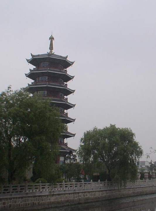 七寶塔在山西平順縣城西北23公里大云寺前。周顯德元年(公元 954年)建。通體用堅硬青石雕造。原為七層,現(xiàn)存五層,高為六米。下三層平面八角形。第一層雕寶裝蓮花、獅子、麒麟、飛馬等。第二層雕伎樂人,體態(tài)輕盈,舞姿優(yōu)美,伴奏者栩栩如生。第三層轉(zhuǎn)角處雕絞龍柱,回旋盤繞。塔檐下飛鳳、飛仙、共命鳥等變化多姿。檐下周匝垂帳,正面券門上雙龍戲珠,門側(cè)侍立二天王。后面比丘半掩門。兩次間二力士分立左右。第四層周匝垂帳,前后有假板門。第五層上覆大圓蓋寶珠頂。此堪設(shè)計精巧,雕造頗佳,獨具匠心。