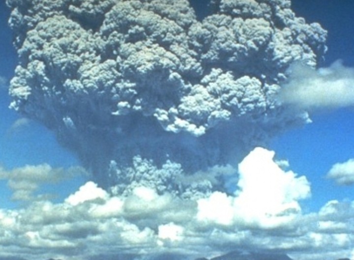 1991年6月15日下午,正當臺風經(jīng)過時,皮納圖博火山最強烈的“普林尼式”噴發(fā)開始,火山碎屑流沉積填滿河谷,一個巨大的火山灰和氣體煙柱進入大氣圈,并形成了一個直徑2.5公里的火山口。為了預防更強烈的噴發(fā)疏散半徑增加到40公里。然而,臺風和雨使火山灰又濕又重,降落到人口稠密的地區(qū),約200人死在壓塌的屋頂下。臺風加劇了火山泥流,增加了死亡人數(shù)。